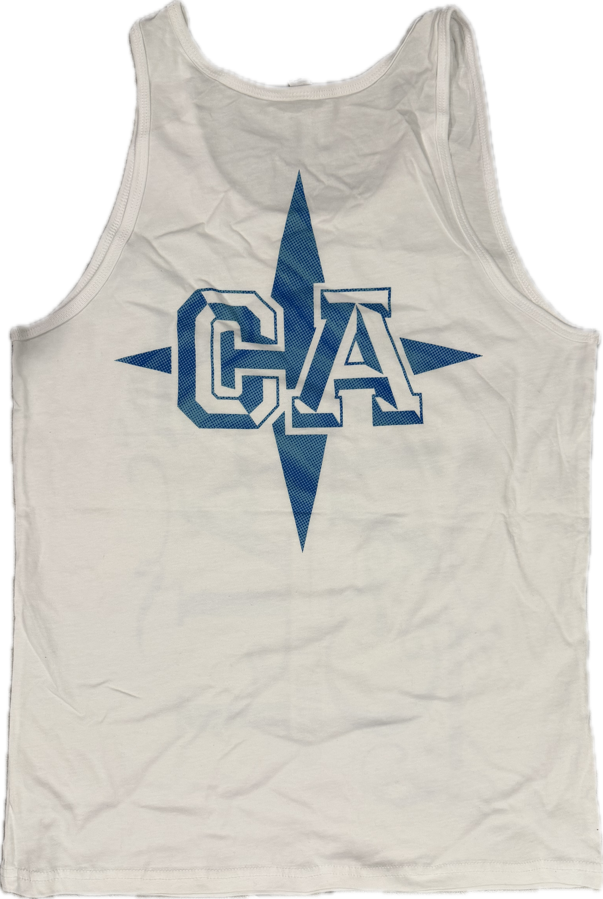 White Tank Top with Screen Printed deisgn on front and back.
